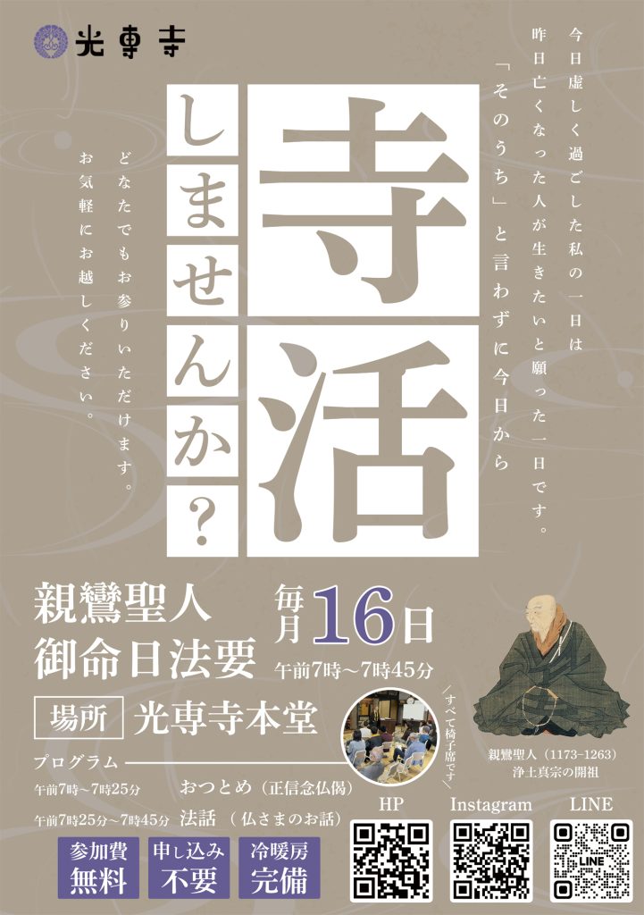 「親鸞聖人御命日法要」 をお勤めいたします。