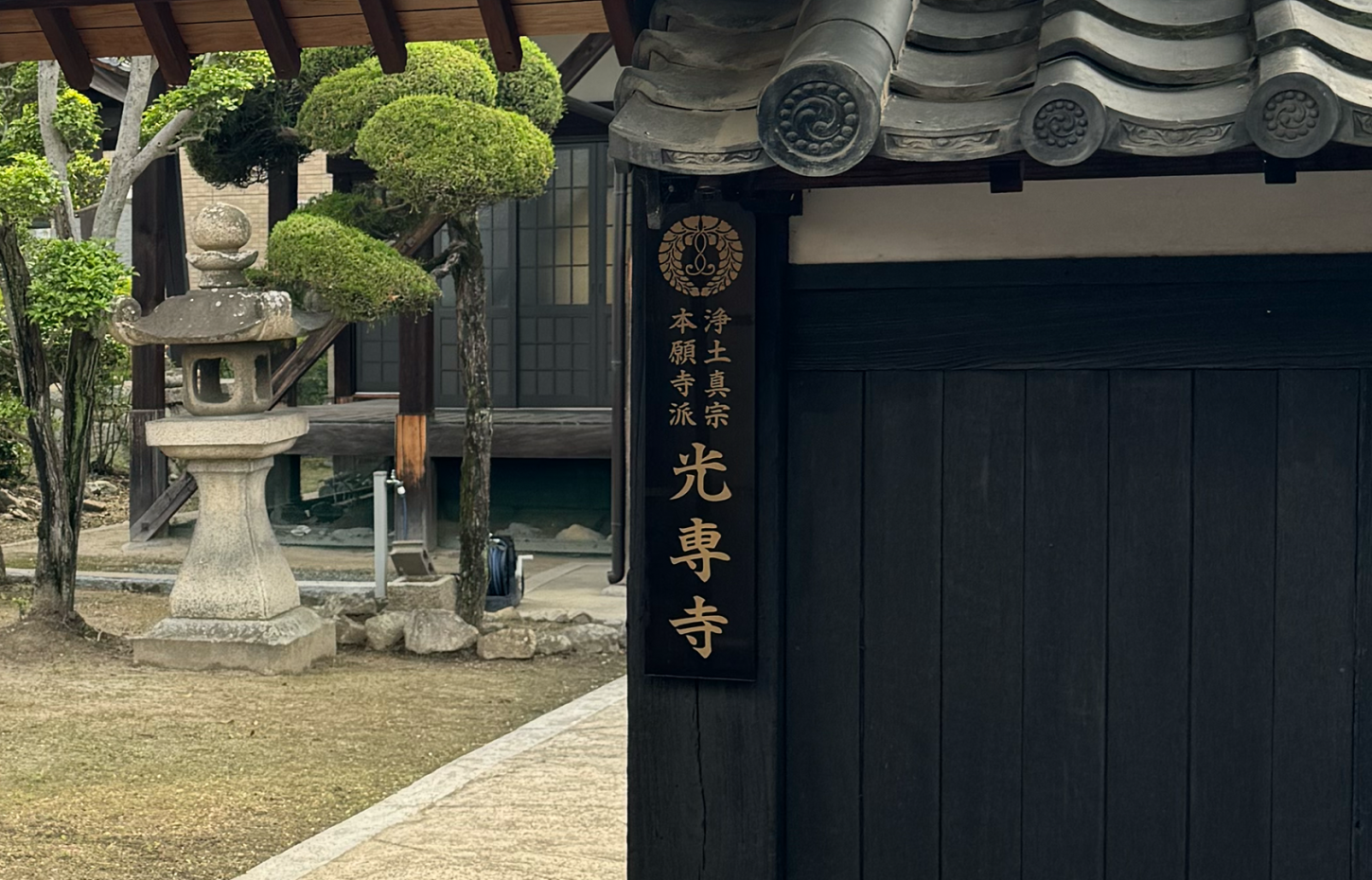 最初は場所がわからず少し迷いましたが、「お寺の門の前にありますよ」と教えていただき、門前に立つと、真正面に光専寺のお墓があり、大変驚きました。